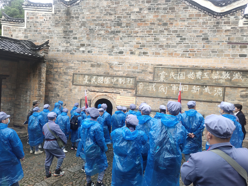 The whole army listened carefully to the story of the Jinggangshan Revolution in front of Chairman Mao’s former residence in Maoping