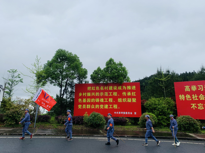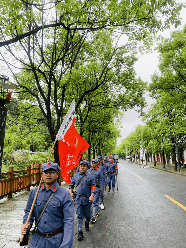 Encouraged by the red slogan of Jinggang Mountain, the soldiers moved forward more tenaciously
