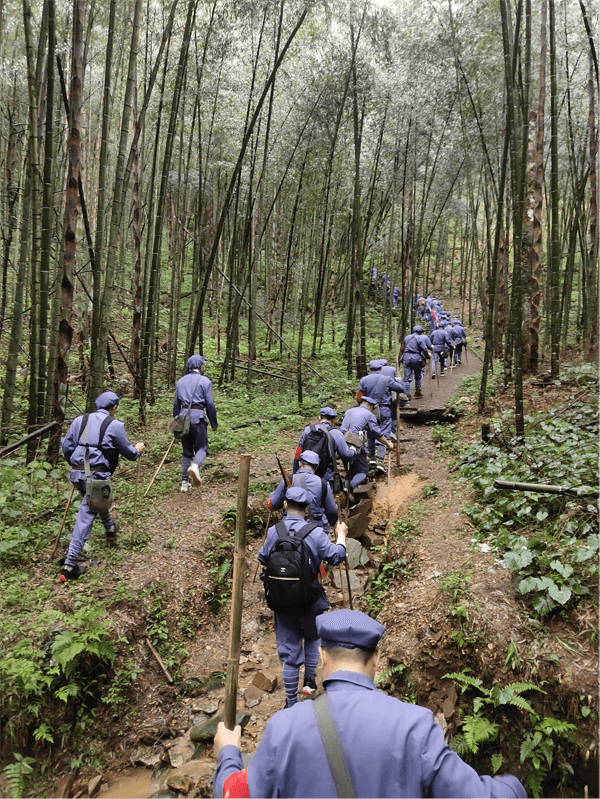 Before the 41km hike, the whole army took a group photo in front of the iconic sculpture of Jinggang Mountain