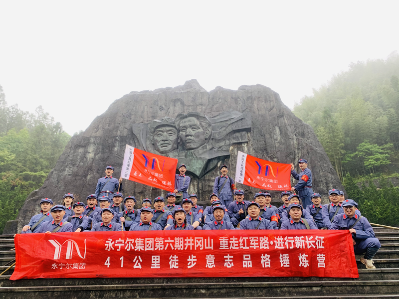 The leaders took a group photo with their teachers in front of the peak, and the joy after victory bloomed brilliantly